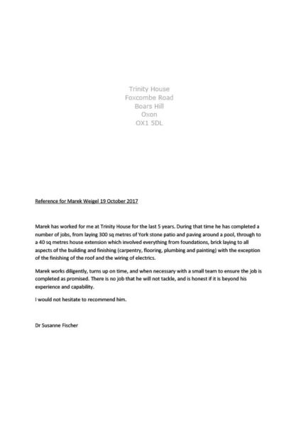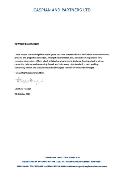 We are extremely pleased with our new bathroom. You were punctual, worked hard and had a clear plan on how you were going to execute the job. Where appropriate, you asked us for instructions and otherwise worked independently with close attention to detail and ensured a high standard.
